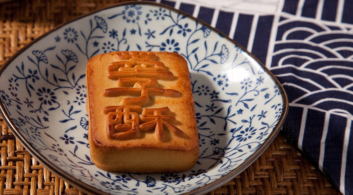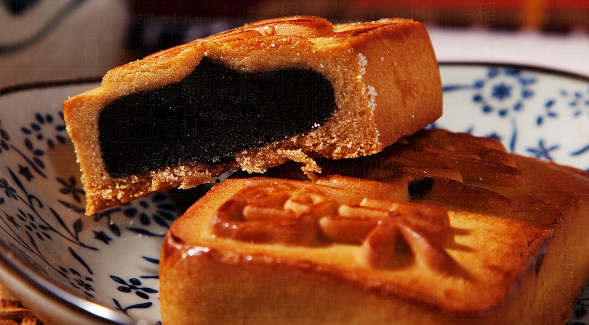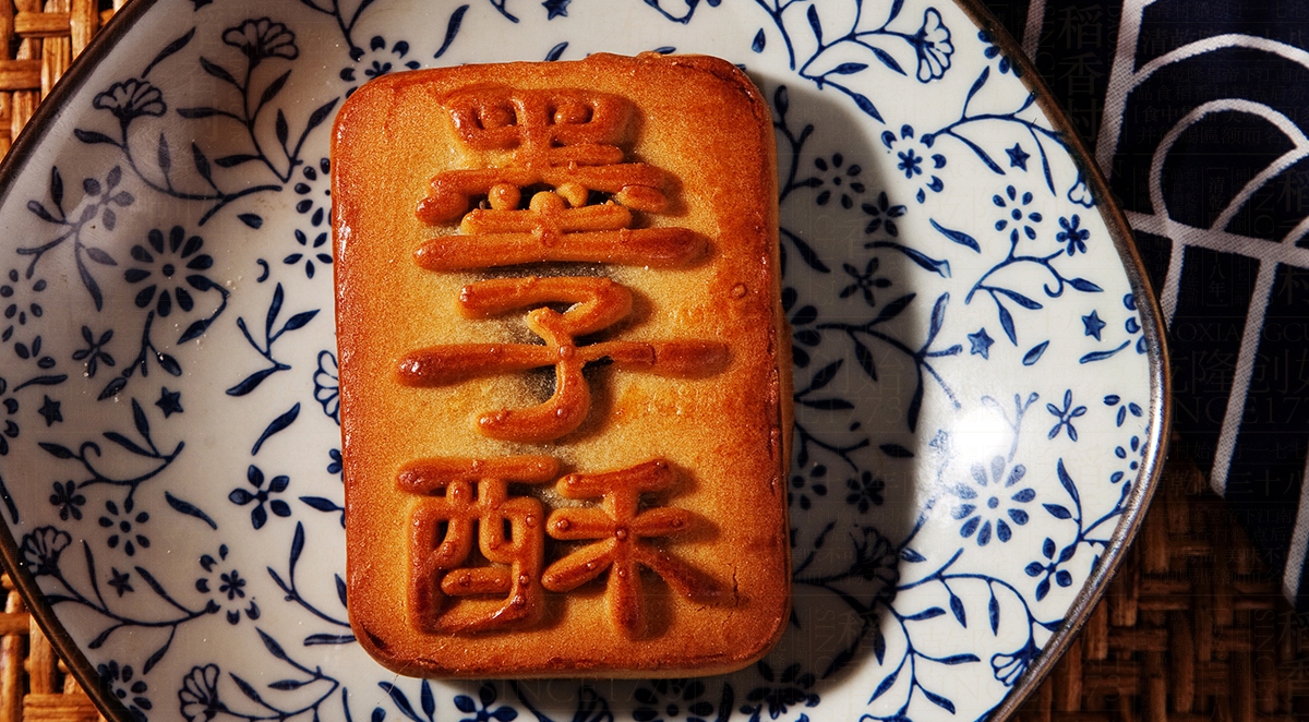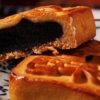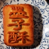 形如金磚,色澤烏亮。餅體細(xì)膩有亮澤,餡心為黑芝麻餡,口感酥松細(xì)膩,具有濃郁黑麻香味。
