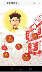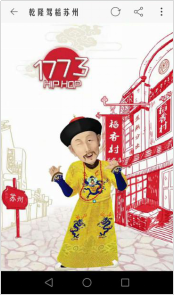 乾隆皇帝多次下江南巡游,在蘇州品嘗過稻香村的糕點后夸贊其“食中雋品,美味不可多得”。并賜一塊葫蘆牌匾,牌匾字體飛金,從此稻香村名揚天下。此次稻香村集團的AR營銷通過鮮明的人物形象設(shè)計將乾隆皇帝“穿越”到現(xiàn)代,運用年輕人喜愛的嘻哈說唱形式再現(xiàn)了乾隆皇帝來到蘇州品嘗了稻香村糕點后的喜悅之情。
