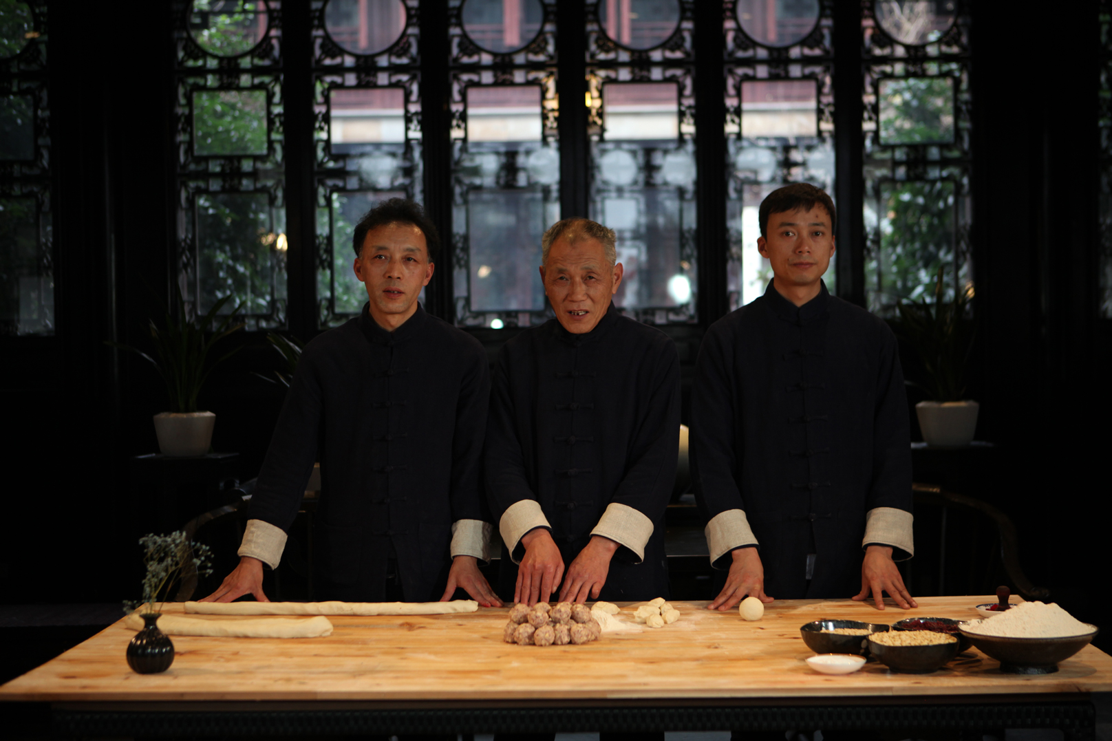 稻香村糕點(diǎn)制作技藝第五代傳承人徐紅生(左)第四代傳承人徐全生(中)第六代傳承人艾滿(右)