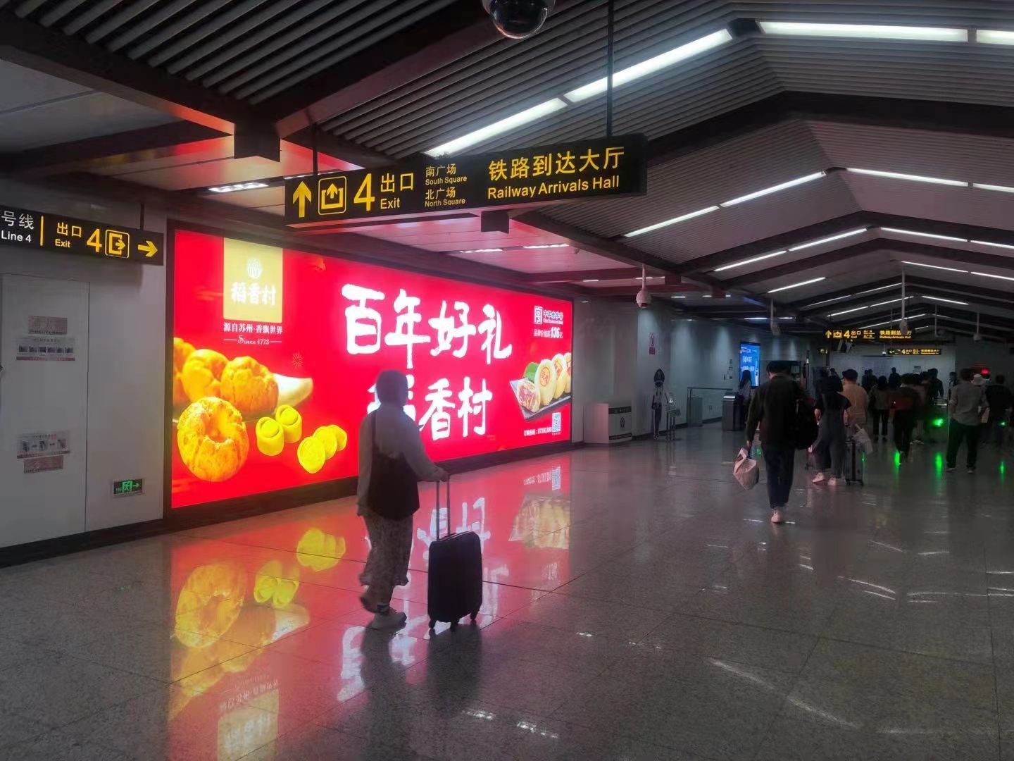 走進蘇州地鐵4號線,“百年好禮稻香村”的燈箱廣告、列車拉手廣告映入眼簾,稻香村蘇式百果、玫瑰月餅以及桃酥等產(chǎn)品亮相,進一步宣傳了稻香村的經(jīng)典產(chǎn)品,強化了蘇式糕點品牌形象。