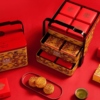 內(nèi)配蛋黃蓮蓉、精制五仁、玫瑰豆沙、奶油椰蓉、京式山楂、金絲棗蓉、滇式酥皮云腿、港式楊枝甘露(桃山皮)、京式玫瑰、黑松露流心奶黃、仙桃慕斯流心(桃山皮)