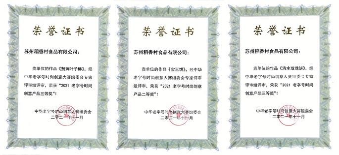 本次大賽蘇州稻香村獲得的部分榮譽(yù)