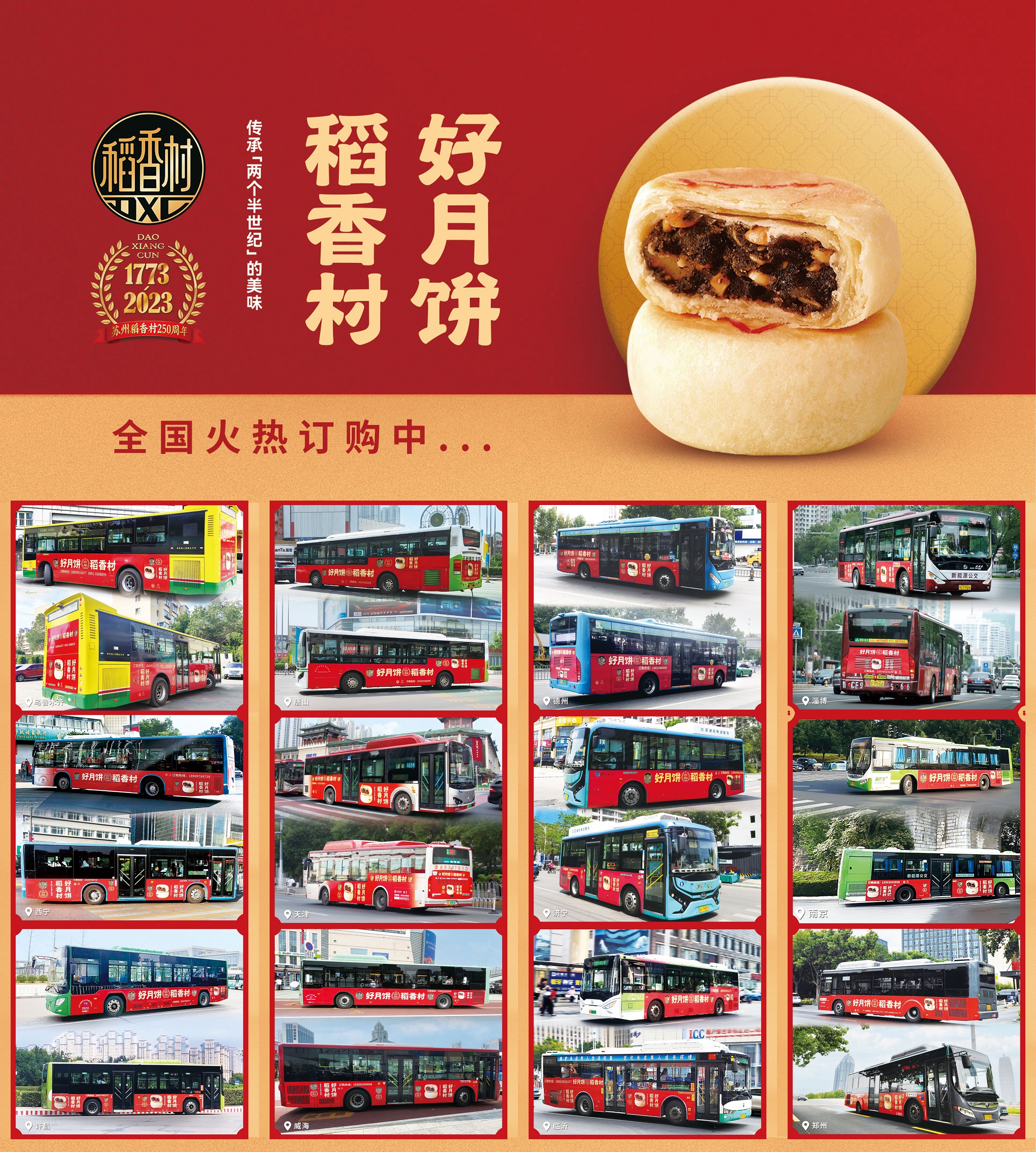 部分大中城市帶有稻香村月餅形象的公交車穿行在大街小巷,營造出了濃濃的中秋節(jié)日氛圍。
