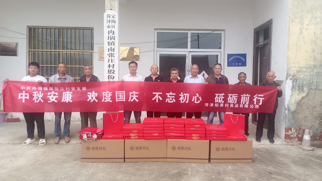 9月27日,稻香村集團菏澤公司的工作人員來到菏澤市定陶區(qū)冉堌鎮(zhèn)南張莊村,為當?shù)卮迕袼腿ブ星镌嘛炁c節(jié)日祝福。