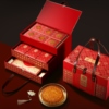 這款三層手提月餅禮盒,采用尊貴大氣的紅色為主色調(diào),盡顯中秋佳節(jié)的喜慶與熱情。獨(dú)特三層設(shè)計(jì),首層采用上掀蓋式,精致的燙金底紋躍然于盒面,低調(diào)中透露奢華質(zhì)感,彰顯非凡品質(zhì)。下設(shè)兩層抽屜式結(jié)構(gòu),巧妙融入傳統(tǒng)美學(xué)與現(xiàn)代創(chuàng)意,滑動(dòng)順暢,每一次拉開(kāi)都是驚喜的探索。800g精制五仁大月餅,廣式、蘇式、蛋黃酥、糖醇月餅,配餅豐富經(jīng)典,原料升級(jí),質(zhì)量上乘。懂你想要的面兒,給你到位的禮。
