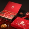 此款手提月餅禮盒,整體以紅色作為底色,盒面的焦點,莫過于那匠心獨運的燙金雙龍圖案,金色光澤在光線的照耀下流光溢彩,寓意著吉祥如意與無上的榮耀。