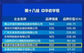 may 12,2021 稻香村食品集團(tuán)股份有限公司以167.29億元的品牌價(jià)值位居中華老字號(hào)品牌價(jià)值榜前列,品牌價(jià)值再創(chuàng)新高! -
